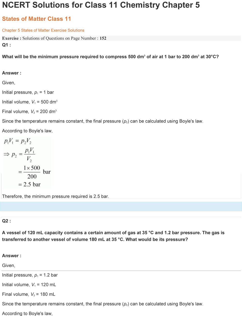 Ncert Solutions For Class 11 Chemistry Chapter 5 States Of Matter
